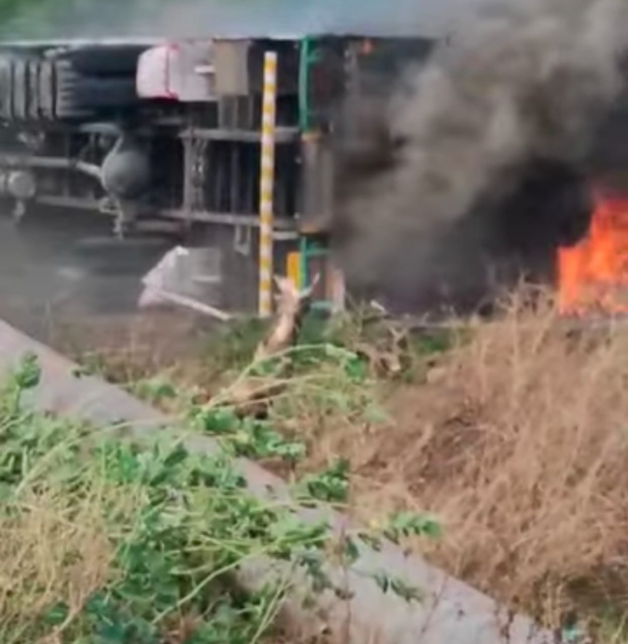 घटनास्थळाहून फरार झालेला कंटेनर लोखंडी सावरगाव नजिक पलटी