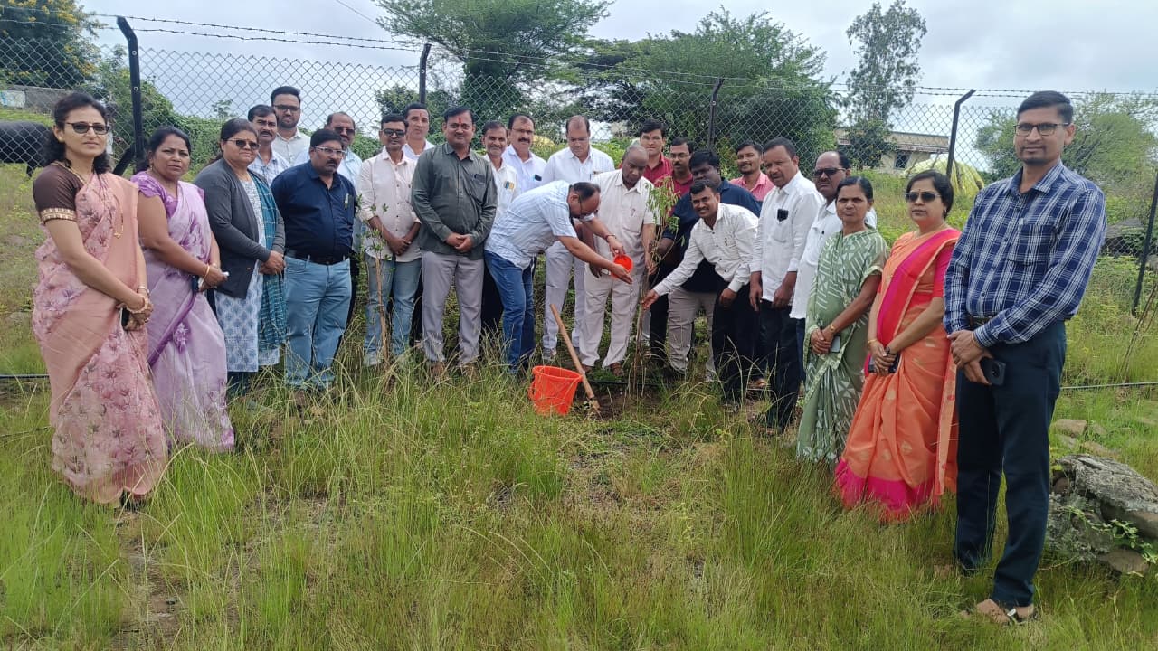यांसह शिक्षक कर्मचाऱ्यांच्या हस्ते वृक्षारोपण करण्यात आले