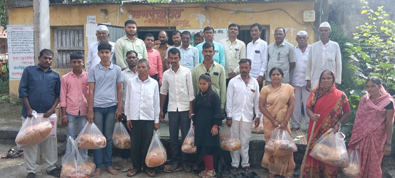 ग्रामस्थांच्या एकजुटीतून तालुक्यातील पहिला उपक्रम; घरपट्टी व करवसुलीतील निधीतून फराळ किटचे वाटप