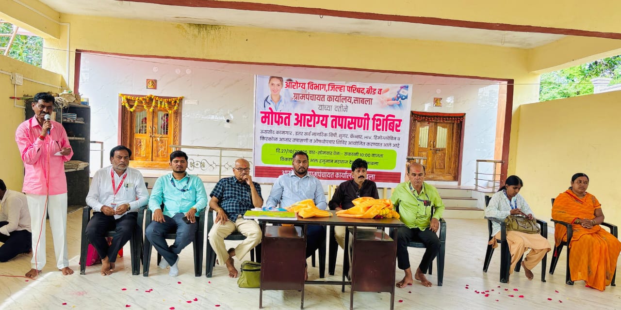 यांच्या वतीने या मोफत आरोग्य तपासणी शिबीराचे आयोजन साबला येथील सरपंच सौ . जनाबाई नरहरी काकडे यांच्या वतीने करण्यात आले होते . साबला येथील नागरिक जास्त प्रमाणात ऊसतोडणी करण्यासाठी ऊसतोड कामगार म्हणुन काम करण्यासाठी ईतर बाहेरच्या राज्यात दुर दुर ठिकाणी जातात . म्हणुन त्यांच्या आरोग्याची तसेच गावातील ईतर नागरिकांच्या आरोग्याची काळजी म्हणुन मोफत ऊसतोड कामगार आरोग्य शिबिर घेण्यात आले होते . तसेच ईतर सर्व गावातील नागरिकांची आरोग्य तपासणी करून त्यांना तात्काळ औषध , उपचार करण्यात आला . त्यामध्ये बिपी , शुगर , कॅन्सर , HIV , हिमोग्लोबिन तसेच सर्व आजारांची तपासणी करण्यात आली . यावेळी साबला नगरितील नागरिकांनी उत्तम प्रतिसाद दिला .
