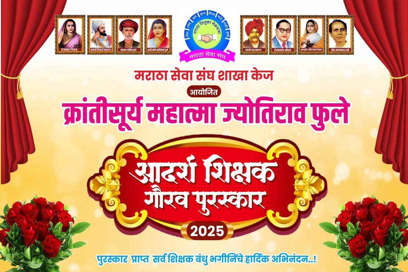 मराठा सेवा संघाच्या वतीने ज्योतिराव फुले आदर्श शिक्षक गौरव पुरस्कार वितरण कार्यक्रम केज येथे